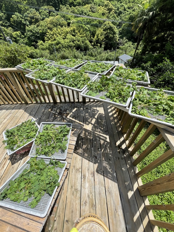 木草茶の大切な一種、牡丹坊風を、照島の浜は取りに行って、梅雨になる前の晴天に4日間干しました。