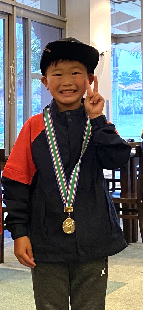 先日カヌチャゴルフコースで行われた、小学生の認定会において、新小学1年生〜3年生までの部で1年生ながらも優勝することができました。