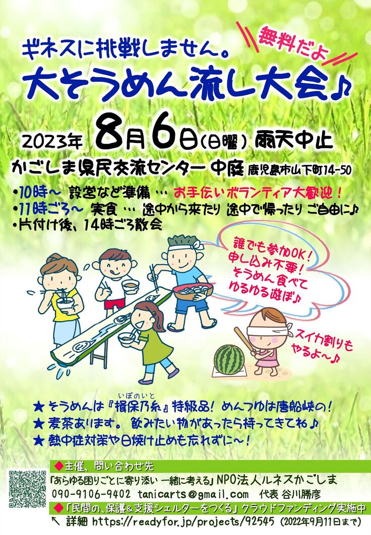 ここからが本題なのですが、ルネスかごしまのイベントでは、その年のイベントが終わった瞬間に(時にはイベント実施中に)、来年の同じイベントの告知をおこないます。だいたいは、同じスパン(そうめん大会は8月第一日曜日、とか)なので、告知しなくてもわかる人にはわかるんですけどね。