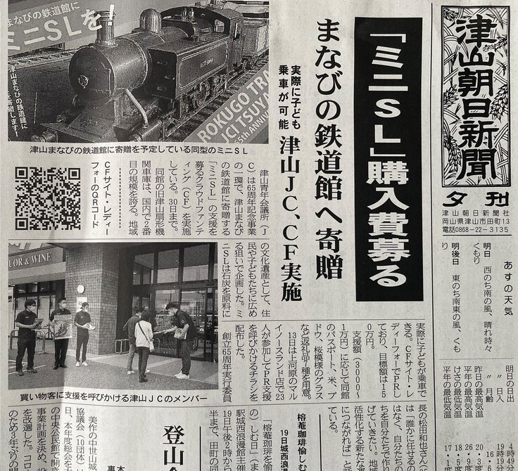 6/16の津山朝日新聞様に今回のクラウドファンディングを紹介していただきました!