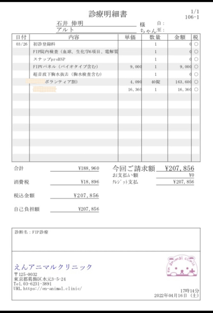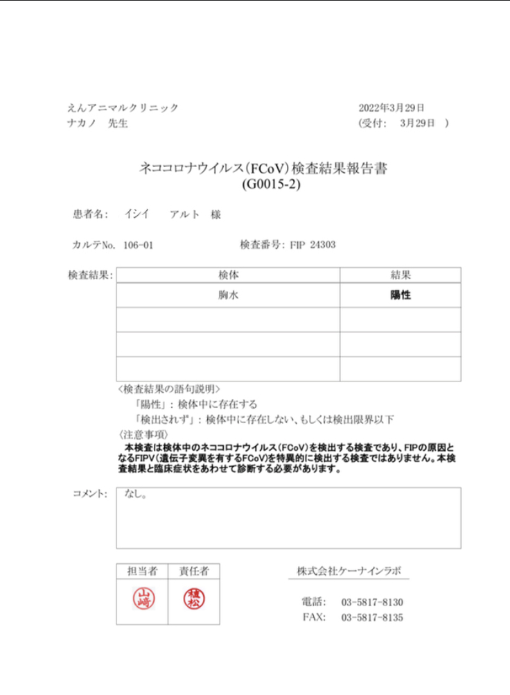 その際、猫伝染性腹膜炎(FIP)かもしれない…