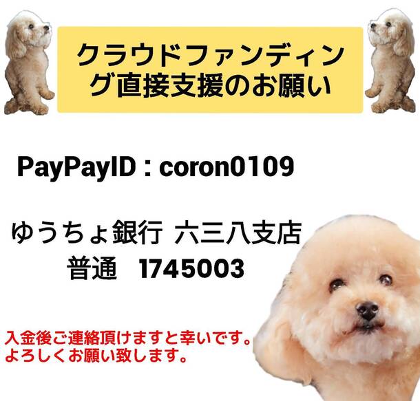 ※ご支援費はすべて手術費・検査費・術後の治療費に充てさせていただきます。