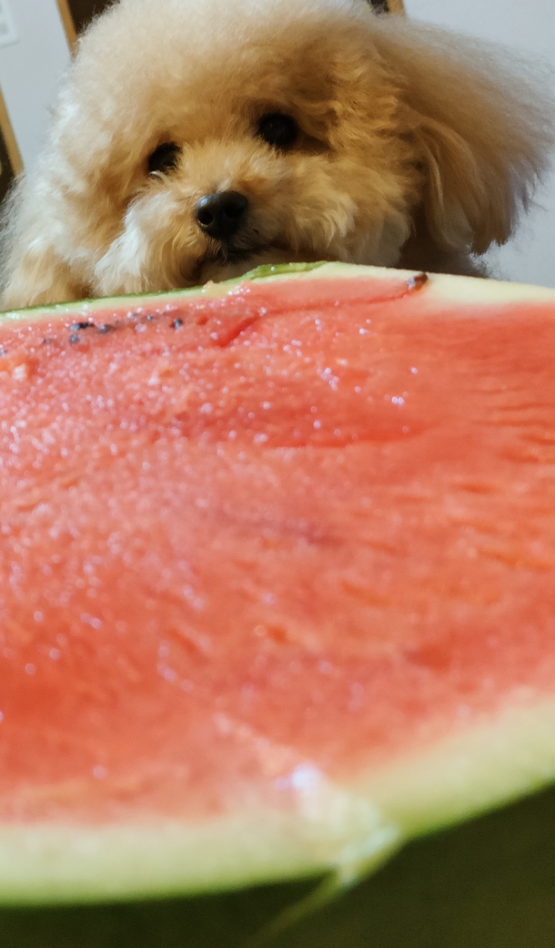 コロンはスイカに目がないので、スイカを切り分けている時からガン見👀でした。
