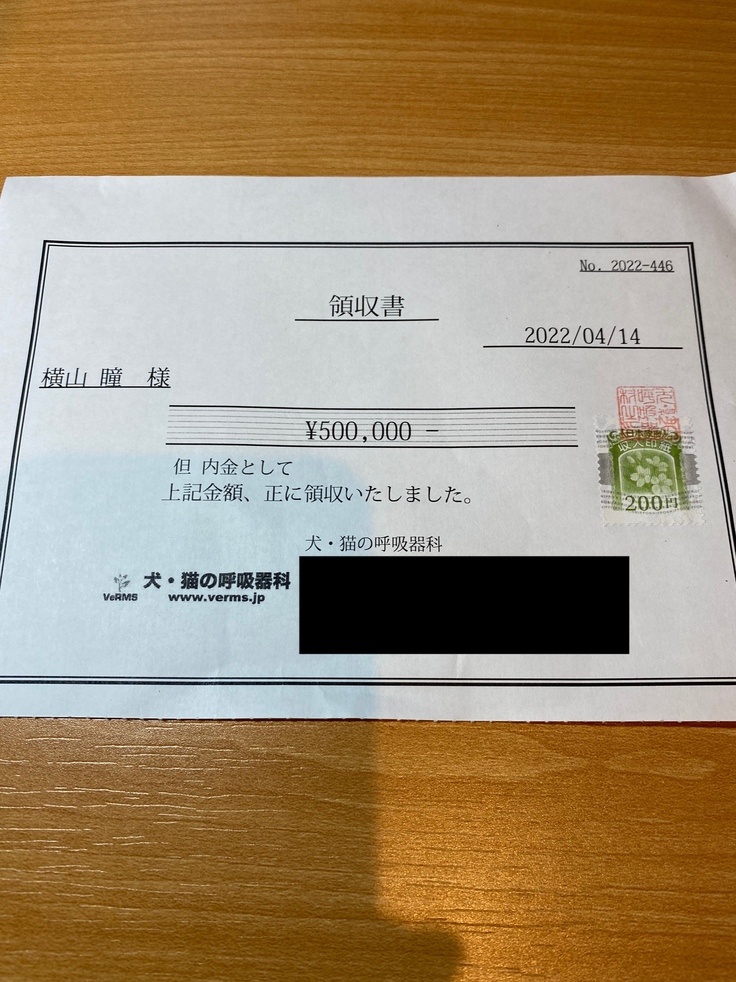 皆様から頂いたご支援金は、4月18日に手術する手術費用の補填とその後の入院費用に充てさせて頂きます。