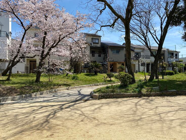 元気にあそぶ小学生のこどもたち、小さいお子様連れの親子、お散歩する高齢の方、テニスコートを利用するすぐそばの中学校の部活動や週末の趣味の方。