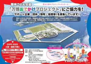 サポート企業や団体様からのご寄付をいただきながら、大阪・関西万博に全国から難病のお子さんとご家族をご招待する「万博おでかけプロジェクト」を主宰しています。開催期間中、100家族400名様をご招待します。