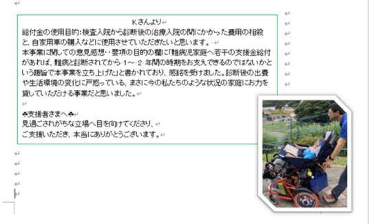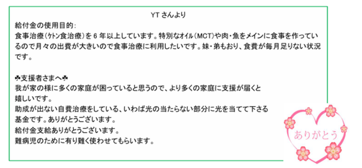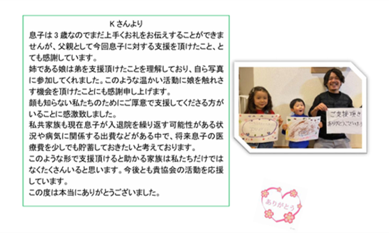 難病児ファミリーからのお礼メッセ―ジ ※全ての画像についてご本人、保護者より掲載の許諾を得ています