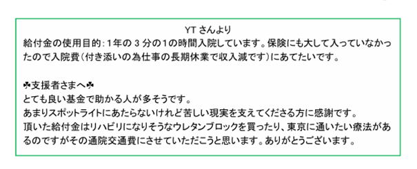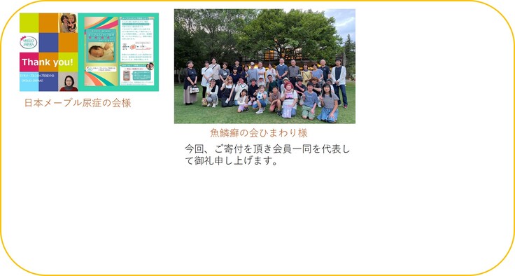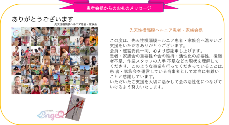 そして、患者のお子様のいるご家庭をはじめ多くの方々からも、患者会を支援したいとのお申し出やご寄付もいただきました。