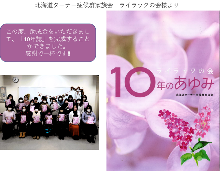 北海道ターナー症候群家族会 ライラックの会様が、2011年発足からの10年間の活動を「10年誌」として発行されました。