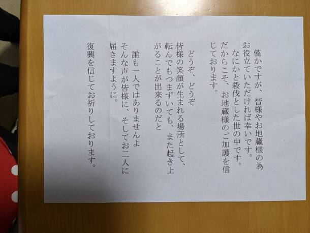 片付けしていると募金箱から茶封筒の頭が見え、引っ張り出してみると