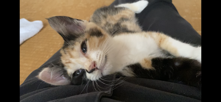 昨年2021年4月、東北地方の親戚で地域猫が納屋で5匹の子猫を産んでしまい、愛嬌顔のちこりんを選ばせて頂き二ヶ月後我が家へ迎え入れました。