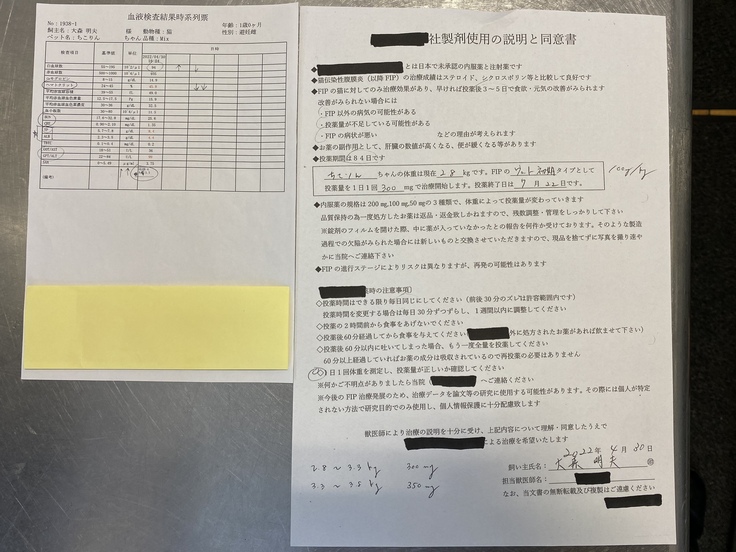かかりつけの病院では対症療法しか出来ない為、その日からFIP治療に対応している病気が近くにないか、夫婦二人で必死に探しました。
