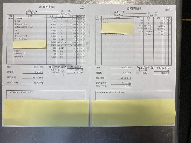 ▼3月23日〜体調を崩してから治療を受けた病院の診療明細の一部です。