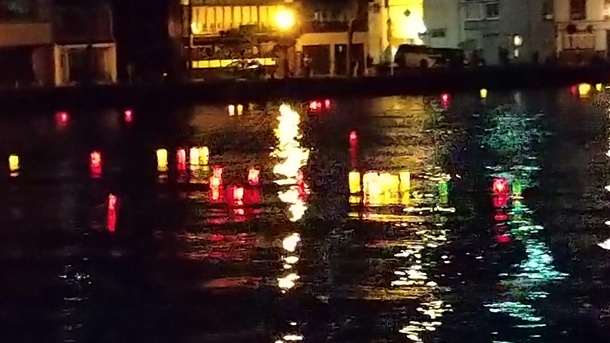 送り盆の大橋川の灯籠流しです。