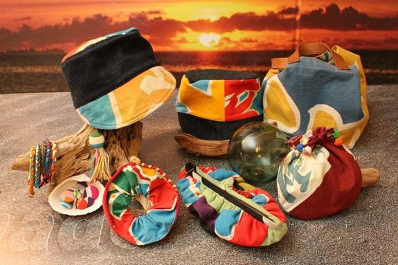 石巻の被災した大漁旗をつかったアクセサリーだったり!