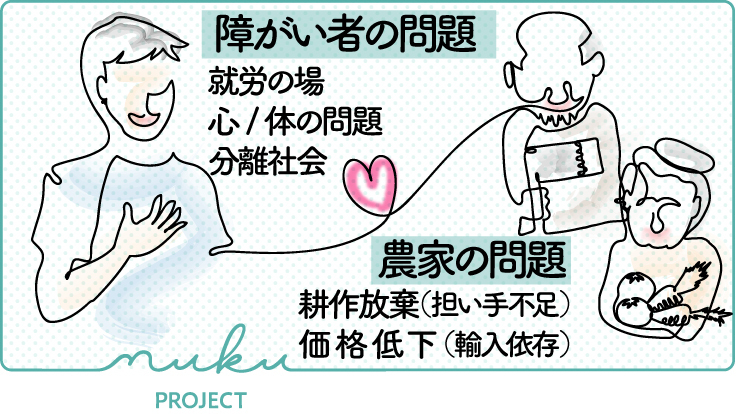 このプロジェクトは障がい者の抱える就労環境の課題と農家の担い手不足を同時に解決していく取り組みです。