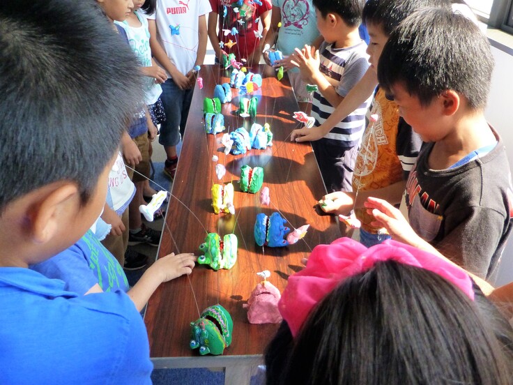その事は、将来どんな社会になっても生きていく為に役立つ大事なツールの一つになると信じています。子どもたちの作品の出来上がりの表面だけを父兄に判断してほしくないので、その都度今日は何を考え、どのように制作したのか説明をするようにしています。