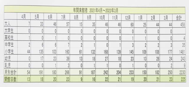 延べ2230名の利用者がありました。開館日数年間225日