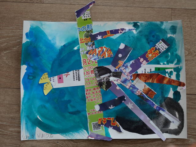 子どもたちは部屋にあるもの(画材・道具等)を自由に使って遊び、くつろぎます。スタッフが絵具の出し方など道具の使い方を指導します。後は、子どもたちに自由に創作させます。