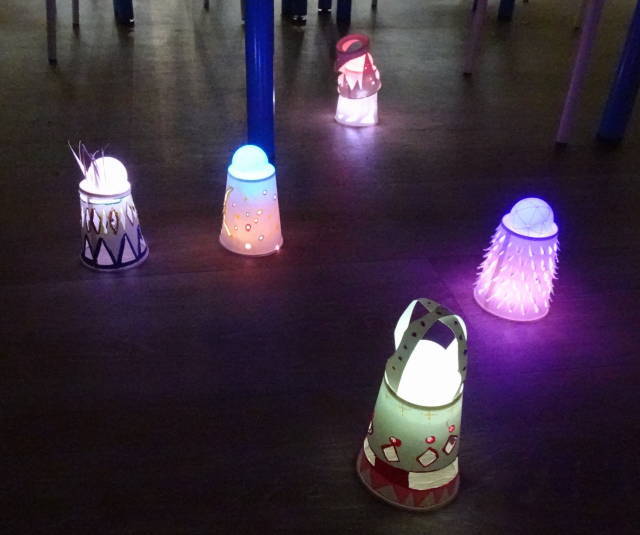 紙コップで作るランタン不思議な世界が現れる。いつまでも皆で眺めていた。