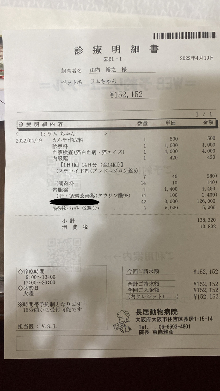 資金は全てFIPを発症したラムちゃんの治療費に使わせていただきます。