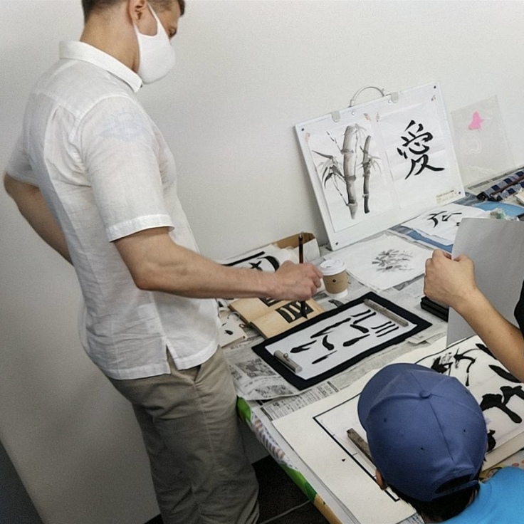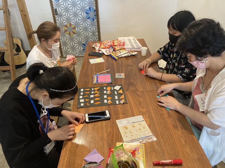 イベントとして、コロナ禍のため、規模は小さめになりましたが、夏(8月)には、日本の文化を体験していただけるような夏祭り風にヨーヨー釣りや、切り絵、墨絵、折り紙、書道体験などを行いました。