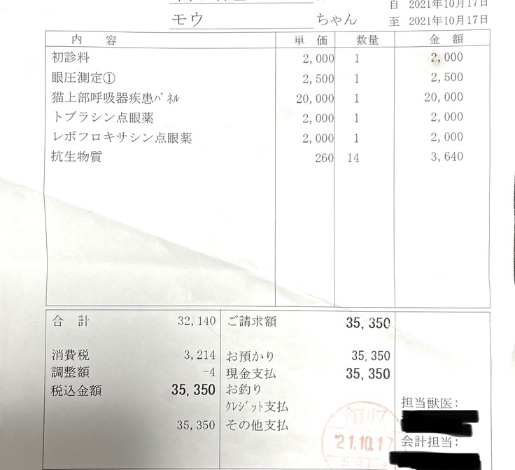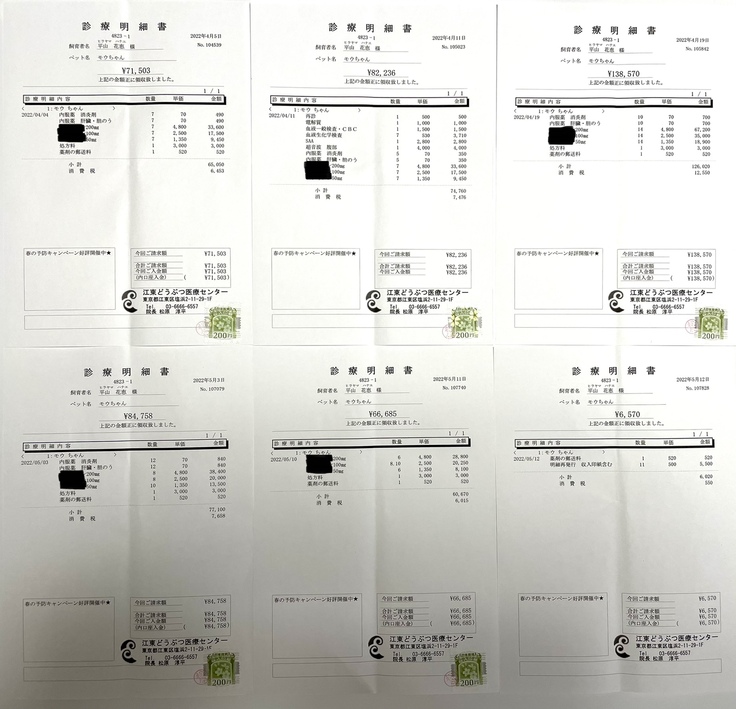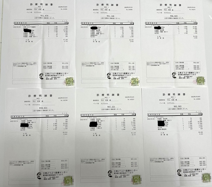 MOUの様子がおかしくなってから、何件も病院を彷徨い、すでに治療費が100万円を超えました。