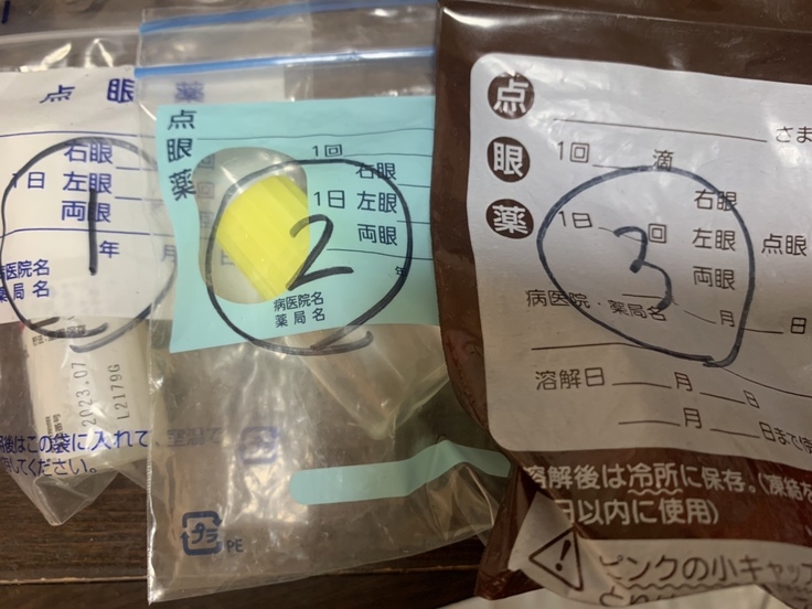 と言われて、一週間3000円の点眼薬が追加され合計三種類の点眼薬を使うことになりました。