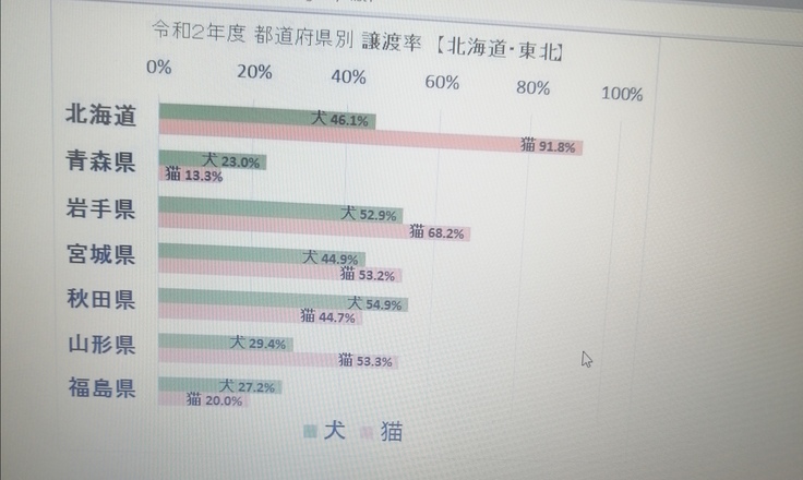 法人を立上げるに至った理由、それはふと目にしたある記事に、青森県が全国の中でも犬猫殺処分率が高いことと、収容数の割合に対する譲渡と殺処分の割合が書かれていました。