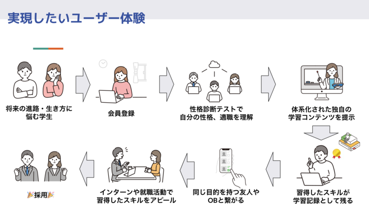 大学生の将来設計のための「学び」と「機会」を結びつけるサービスを検討中です。