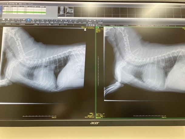 今日、しん動物病院へ抜糸と検査に病院へ行きました。左側が今日撮りました画像です。