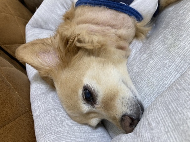 シンですが、寝て過ごしております。1ヶ月は安静第一で過ごすことが大事と言うことで、飼い主である私よりシンが自分なりに調整しているように思います🙇♀️