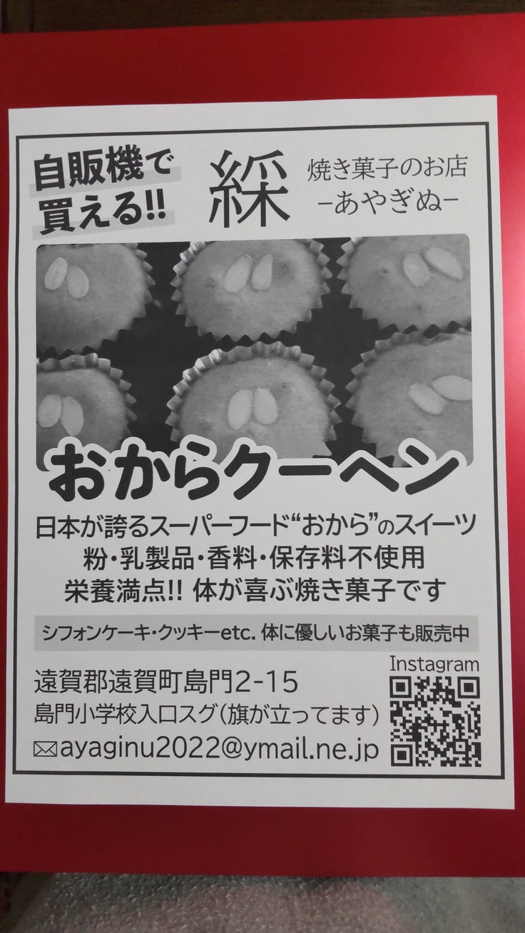栄養食のおからの焼菓子を一人でも多くの方に食して欲しいと願います。