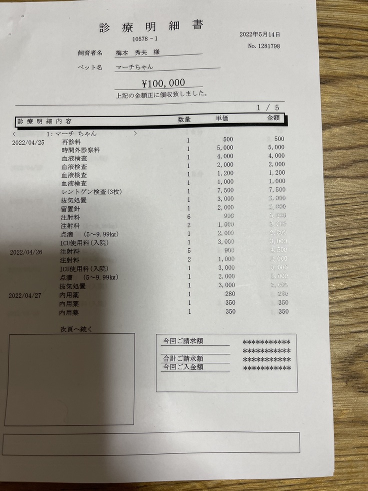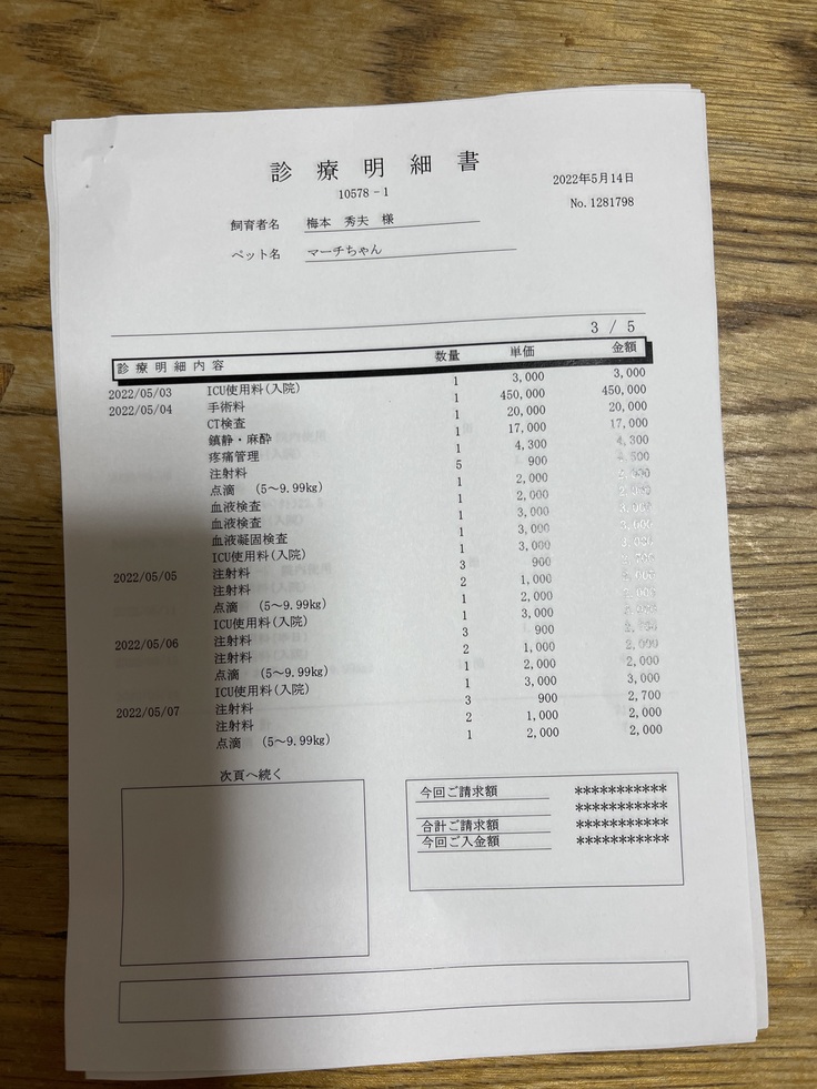 全額マーチの手術費用、治療費、今後の通院費に充てさせて頂きます。