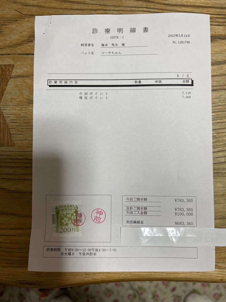 レントゲン写真等の掲載を病院にお願いしたのですが、以前何かの問題が起きたらしくSNSへの掲載は辞退して欲しいと言われましたのでマーチのレントゲンを載せる事が出来ません。