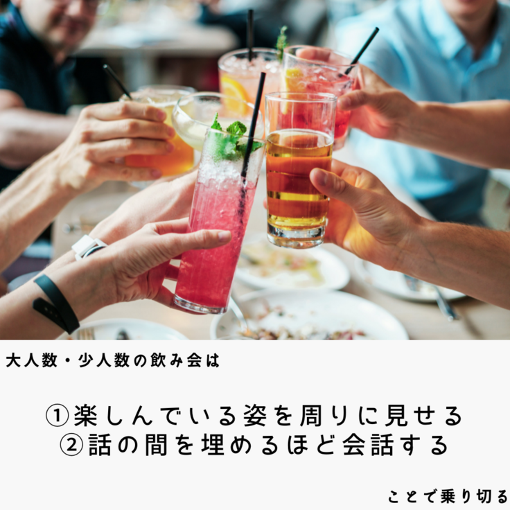 特に①の大人数での飲み会はらくらく切り抜けられます。
