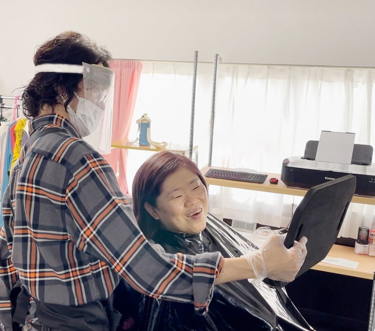 笑顔で元気に楽しみながら取り組むことによって、お客様の気持ちが上がること、笑顔になるキッカケになれたら…髪の毛を切ることでお客様がご家族が施設の職員の方々が笑顔で繋がることが嬉しいのです。