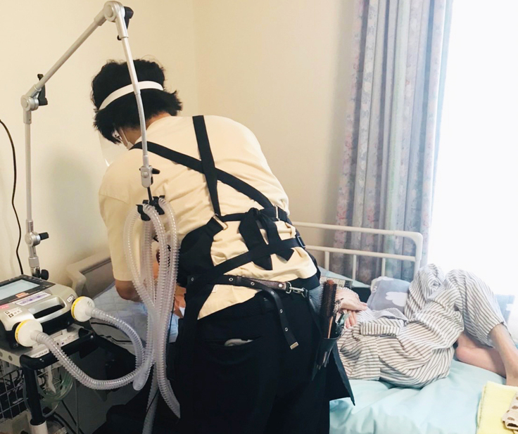 寝たきりの方は、座っままの姿勢を保つのも大変な方もいらっしゃいます。なるべく寝た状態のまま、無理のない体勢で且つ短時間で仕上げることが求められています。