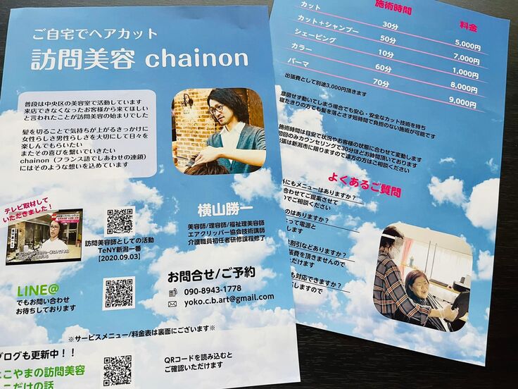 新潟市で、フリーランスとして美容室で仕事をしながら、訪問理美容師(訪問美容chainon)としても活動しております。