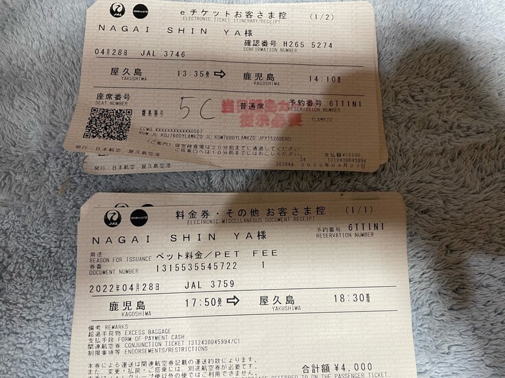 ペット飛行機料金往復8000円
