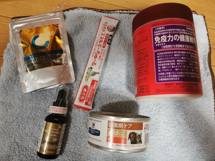 現在抗癌治療を初めてから食の方が落ちてきましたので、高栄養・免疫維持・内臓保護等のサプリを使用して、シリンジ等で無理にでも食べてもらい体力を維持してもらっています。