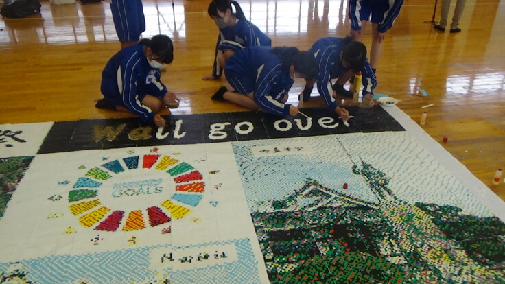 今回のプロジェクトに先立ち、中学生から地域学習を通して「未来に伝えたい宝」「未来までに解決したい課題」が出されました。後者の中に「ゴミのポイ捨て」「海・川をきれいに」「防災に強い地域づくり」などがありました。それらが、「プラ肥料殻モザイクアート」「四番川プラごみ回収大作戦」などのアクションを経て、今回のプロジェクトにも繋がっているのです。