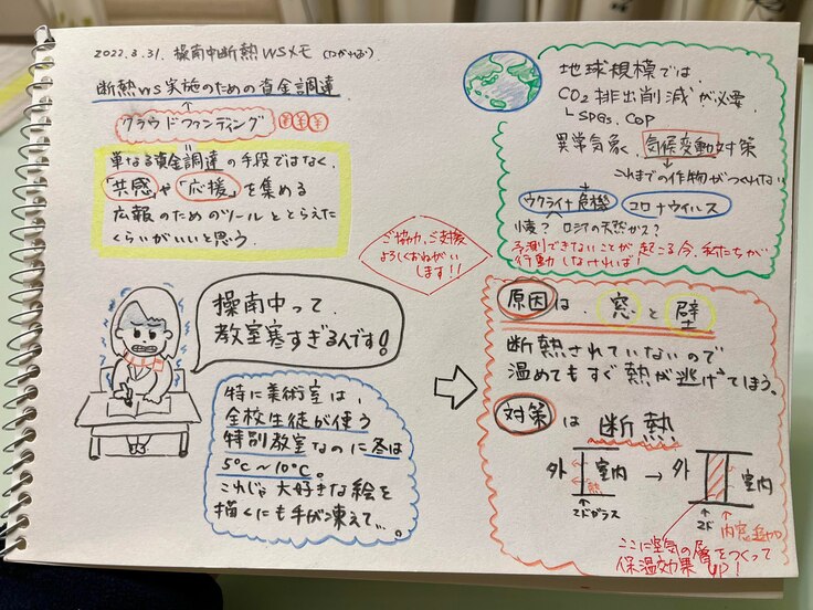 操南中・断熱改修ワークショップ実行委員会は中学生、教職員、PTA、地域、NPO等と連携・協働により、気候変動学習・SDGs推進活動の一環として、特別教室の断熱改修を行います。資金は工具や資材などの入手や講師謝礼などに使用します。