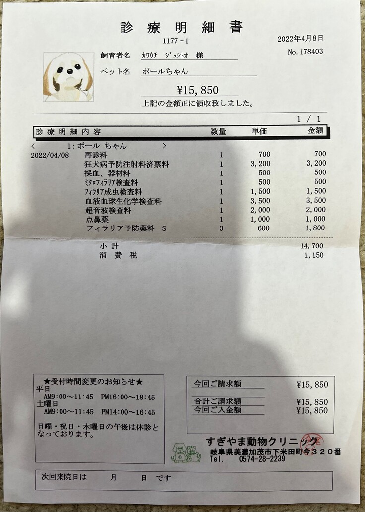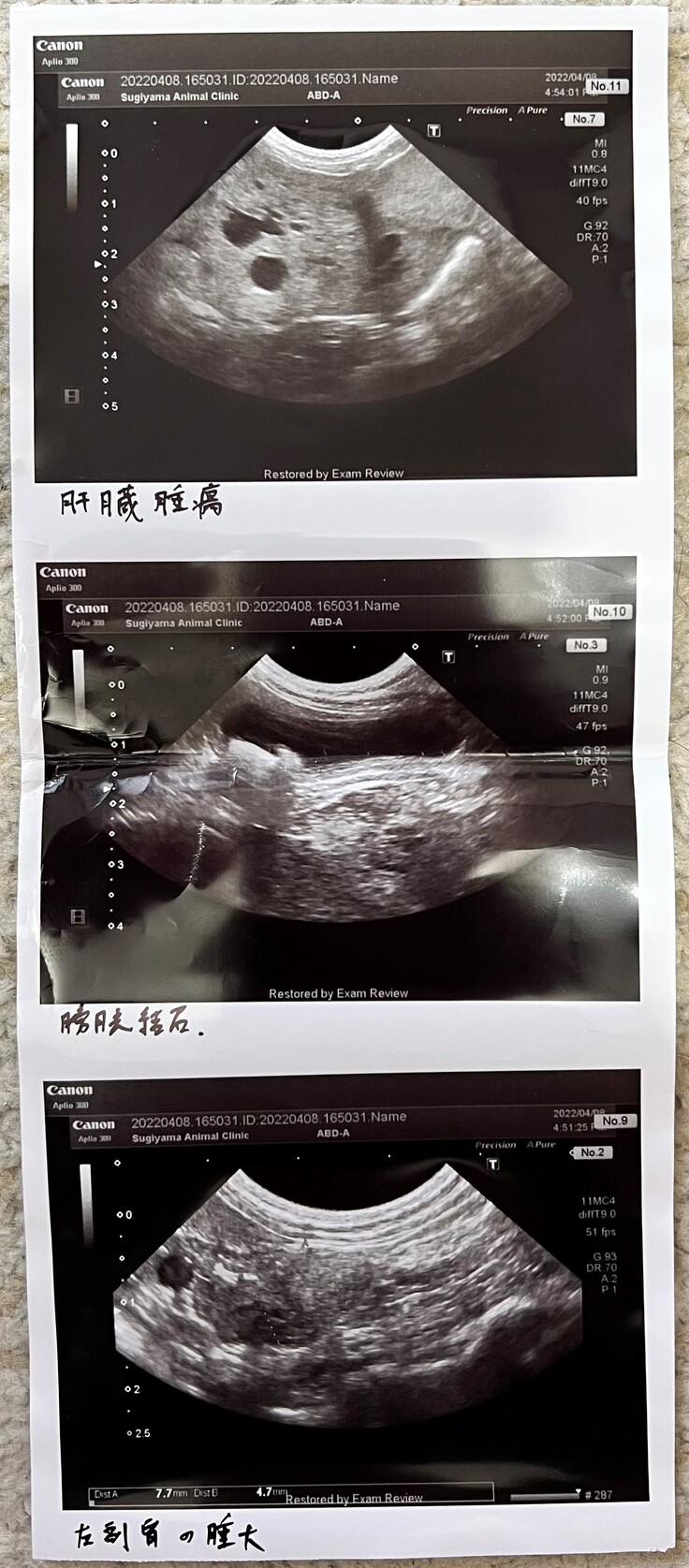 連休近くの為暫くは様子見でしたが食欲が戻らない為、紹介状を書いてもらいゴールデンウイーク明けに大学病院で診察と色々な検査をしました。