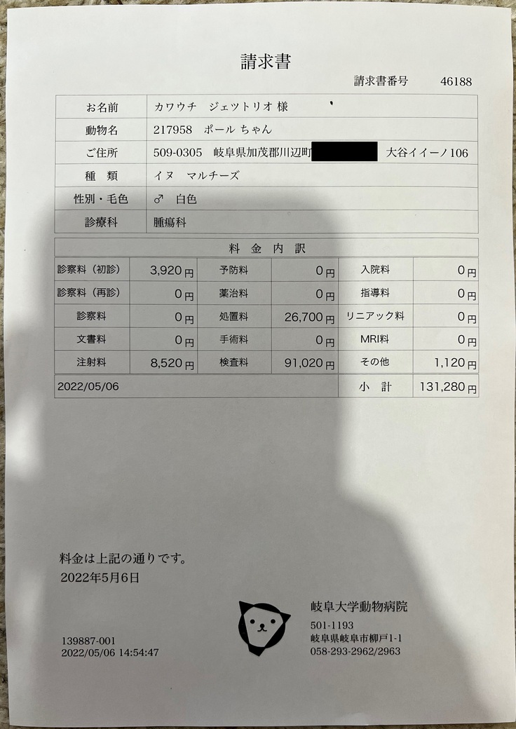 岐阜大学動物病院にて、6月頃手術を予定しております(現時点で日程は未定) 肝臓にある腫瘍を摘出する難しい手術です。