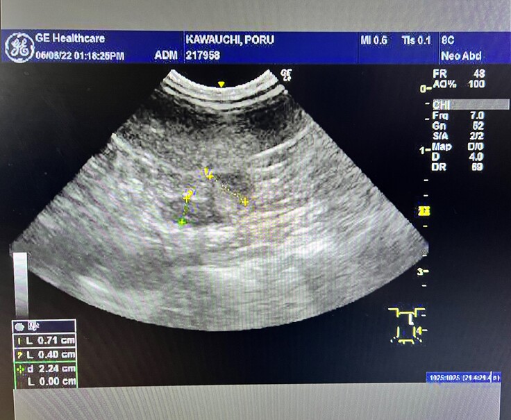 通常の健診と血液検査と超音波の結果、腎臓には異常な数値、石ができている事が発見。