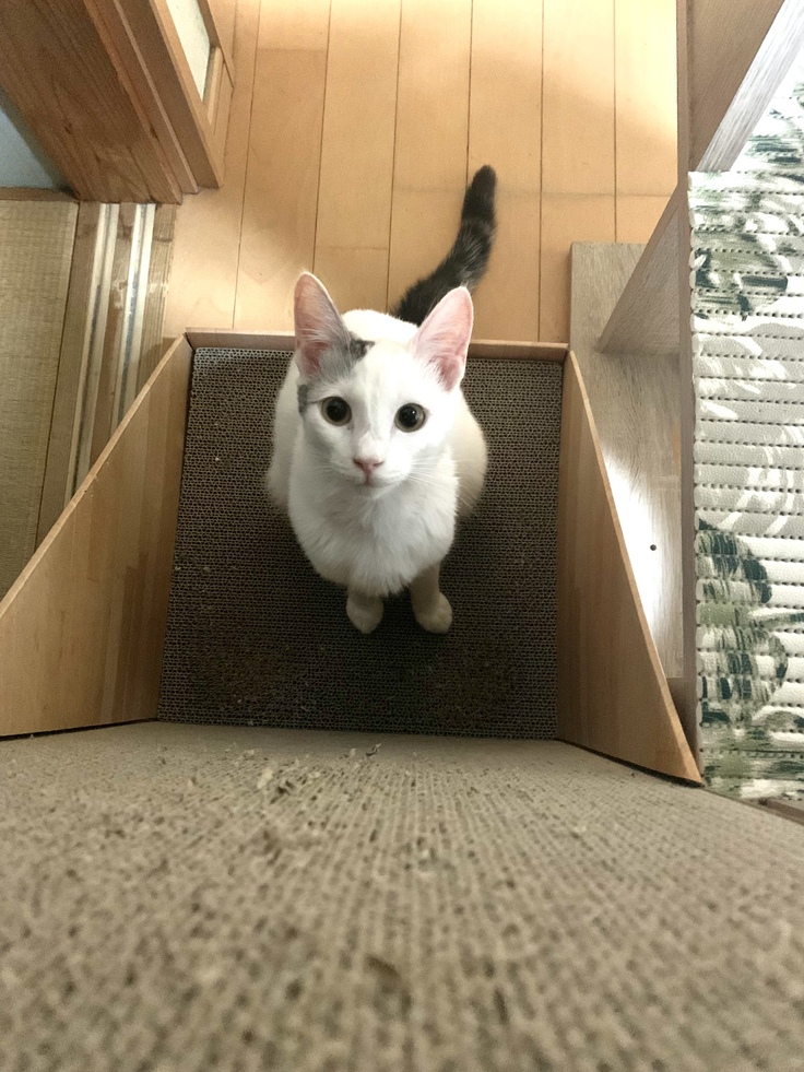 ハクは今年4月より保護猫カフェにて2週間のトライアルを経て一緒に暮らしている、現在11ヶ月の猫ちゃんです(5月27日で1歳になります)。