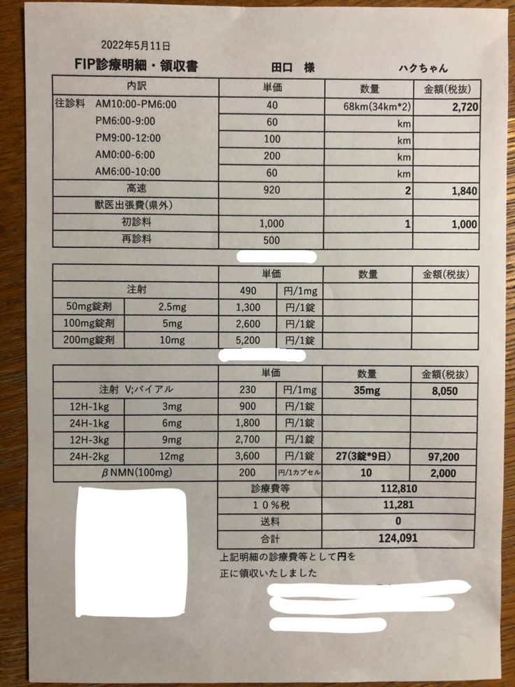 先程も申しましたが、FIPは進行が早く、資金を貯める猶予もありません。家族と相談して考えに考えましたが、やはりハクの命を諦めることは出来ませんでした。