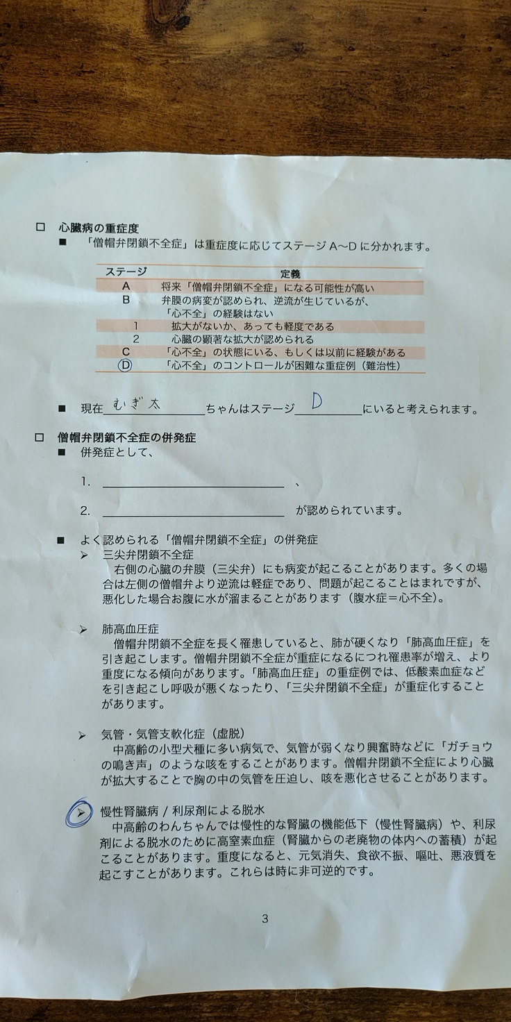 7月12日手術予定ですが、むぎ太が現在、末期の僧帽弁閉鎖不全症の為、