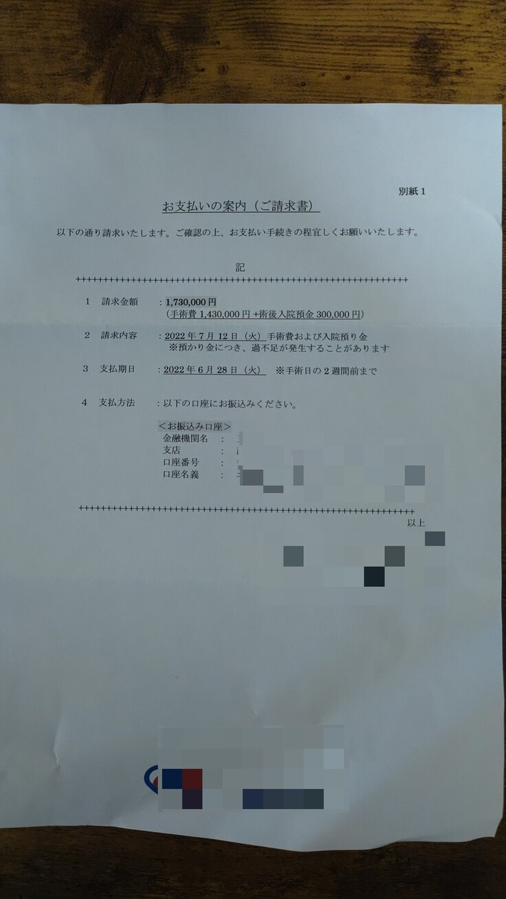実際に手術費に掛かった費用、今後の医療費の明細書もすべて、